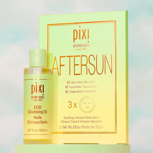 Add our multi-acting SunTreats into your everyday skincare routine! Our Aftersun Sheet Mask helps to soothe and effortlessly cool complexion. Formulated with Cucumber, Chamomile and Ceramides to soothe, hydrate and calm, promoting a more balanced and rejuvenated complexion.   To use, after cleansing place sheet mask onto face and pat into contours...